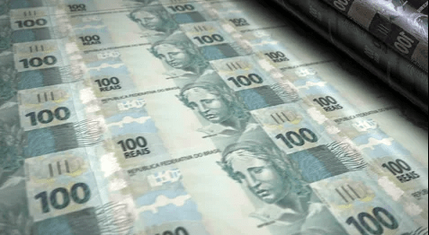 Funciona assim: primeiro, entenda que o governo de um país é desassociado do seu banco central. São instituições separadas, mas que trabalham em harmonia. Então digamos que algum político populista se tornou presidente, e ele decide fazer uma “ação caridosa” aos pobres que garante R$1000 por mês para cada pessoa que se provar como pobre (seja lá o que isso queira dizer). Para o político, é uma forma fácil de garantir apoio popular (e mais importante do que isso, comprar votos para a próxima eleição sem precisar desembolsar nada do bolso dele). Mas veja como isso funciona: o governo então pede ao banco central uma quantia de R$10 bilhões para executar esse plano de governo. O banco central responde: sem problemas, nós nos comprometemos a comprar o equivalente de R$10 bilhões em títulos públicos do país (se você não entende como isso funciona, não tem problema, porque vai ficar claro logo mais). O governo então pega um monte de papéis, imprime neles umas artes bonitas, e chama esses papéis de títulos do tesouro (quem investe em tesouro direto, está investindo nesses títulos). O governo junta esses papéis todos, diz que eles valem R$10 bilhões, e manda tudo para o banco central. Por sua vez, o banco central faz a mesma brincadeira: pega um monte de papéis, imprime as suas artes neles (essas que vemos nas notas de dinheiro), estipula que esses papéis valem R$10 bilhões, e mandam para o governo. Acontece essa troca de papéis com artes bonitas e valores inventados: um lado fica com títulos do tesouro, e o outro com o que chamamos de dinheiro. E assim, o governo deposita esses R$10 bilhões no banco, e pronto: R$10 bilhões foram criados do nada!
