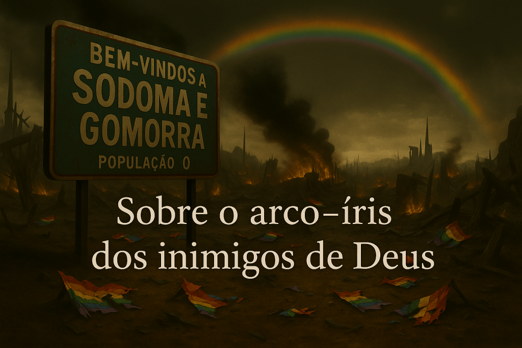 Em uma época de rebelião sem precedentes, nos vemos cercados por bandeiras de guerra — não contra reinos terrenos, mas contra o Reino de Deus. Junho, antes um mês comum no calendário providencial de Deus, foi falsamente reivindicado e rotulado como “festa do Orgulho” — uma celebração não de virtude, mas do pecado. O mais blasfemo entre os símbolos levantados nessa batalha é o arco‑íris: sinal sagrado colocado nos céus pelo próprio Deus como aliança entre o Céu e a Terra (Gênesis 9:13‑17). Esse sinal divino, resplandecente em sete cores, foi agora sequestrado, mutilado e desfilado como estandarte dos apetites desordenados e da revolta espiritual.